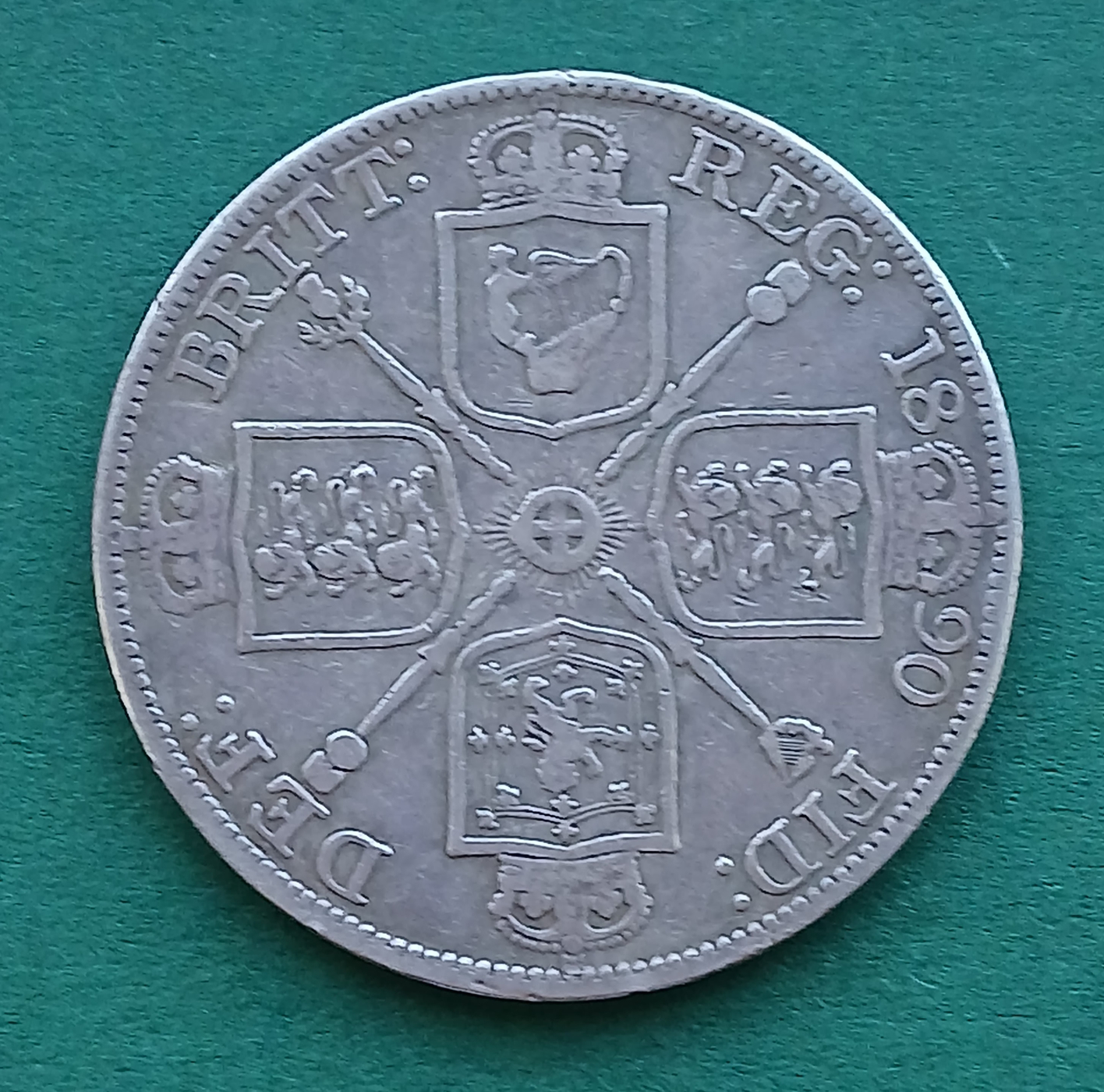 Odd addition to the coinage of the Victorian period. Short lived and was the bane of shopkeepers, and especially barmaids, who often mistook it for the five shilling Crown. I was NOT demonetised by decimalisation in 1971 so therefore remain legal tender to this day with a value of 20p.